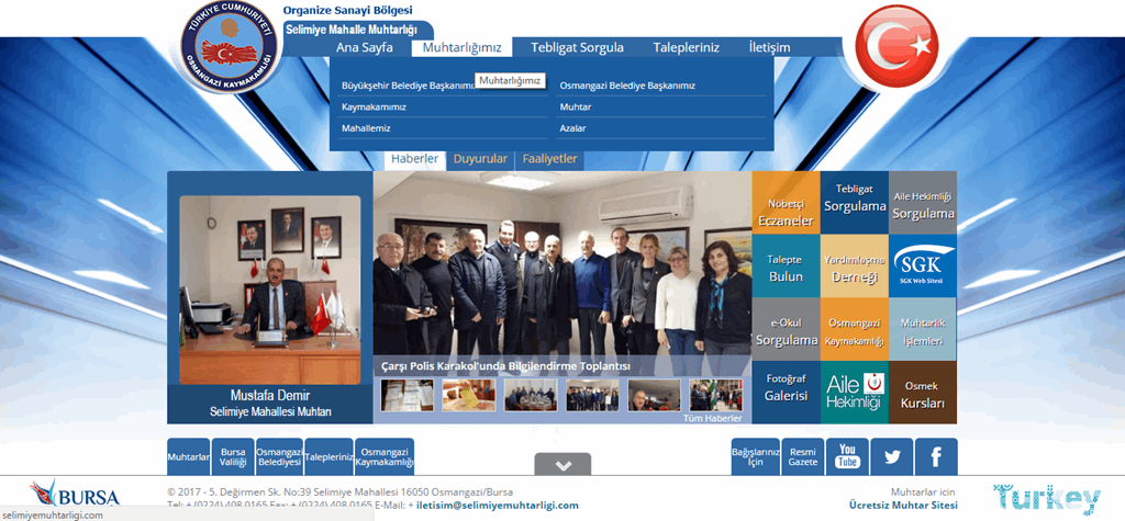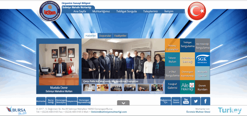 Muhtarlarımız web sitesi sayesinde muhtarlarımızın tanıtımı, azalarınız, mahallede yaptığınız faaliyetlerinin tanıtımı sınırsız resim içerik girmenizi sağlayarak mahalle halkı ile iletişiminizi #muhtar lar için #ücretsiz web sayfası #EnYeniWeb ile sağlıyoruz.